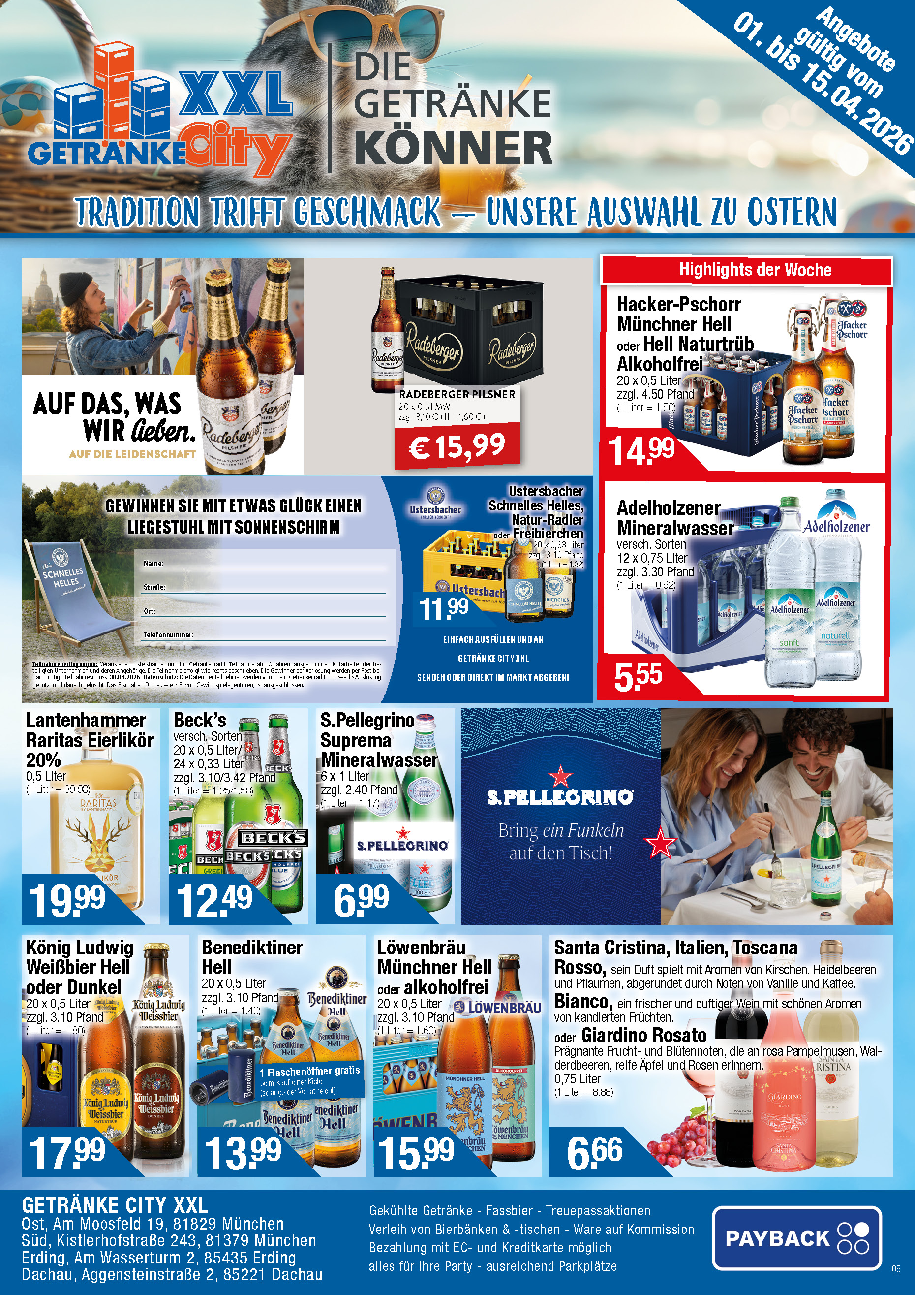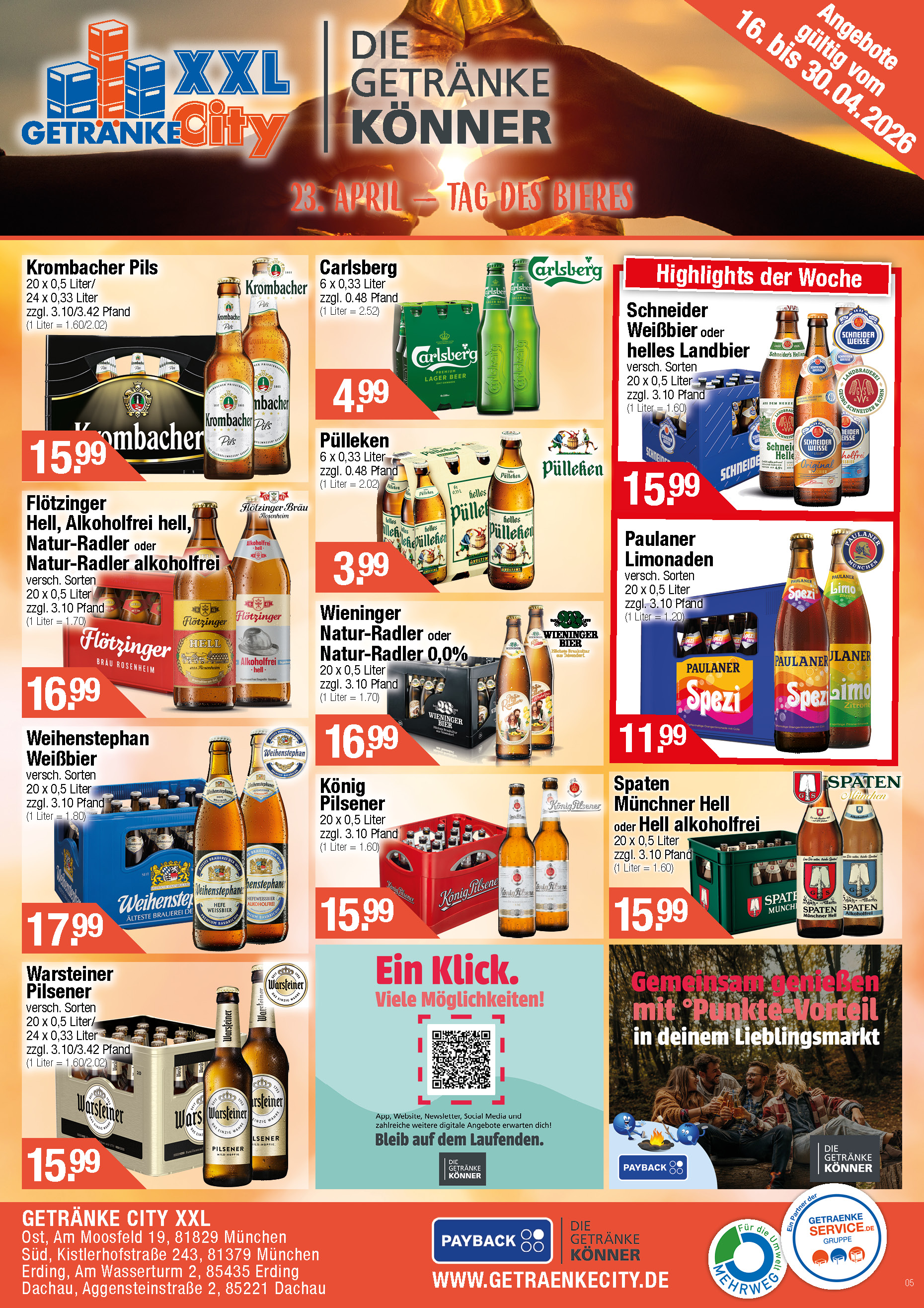 Sie lieben reichhaltige Auswahl – ob lokale oder internationale Biere, ausgewählte Fruchtsäfte, ein für ihr persönliches Wohlbefinden passendes Mineralwasser, den Wein für Ihr Festessen oder einfach nur „Erfrischung“ – und das zum günstigen Preis? Ihr Getränke City Partner hilft Ihnen gerne weiter.